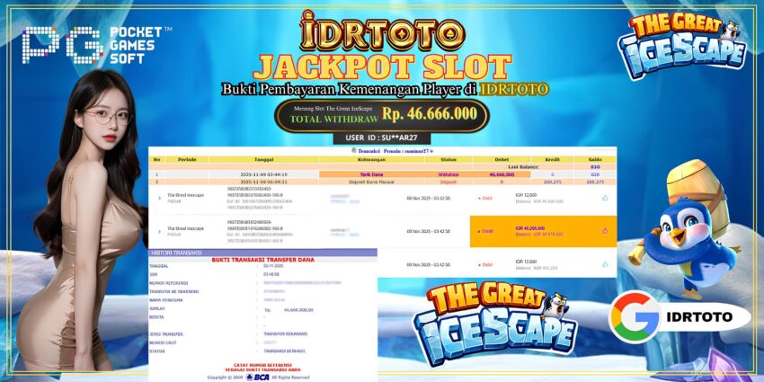 IDRTOTO BAYAR LUNAS JACKPOT PERMAINAN SLOT THE GREAT ICE SCAPE Rp.46.666.000- LUNAS