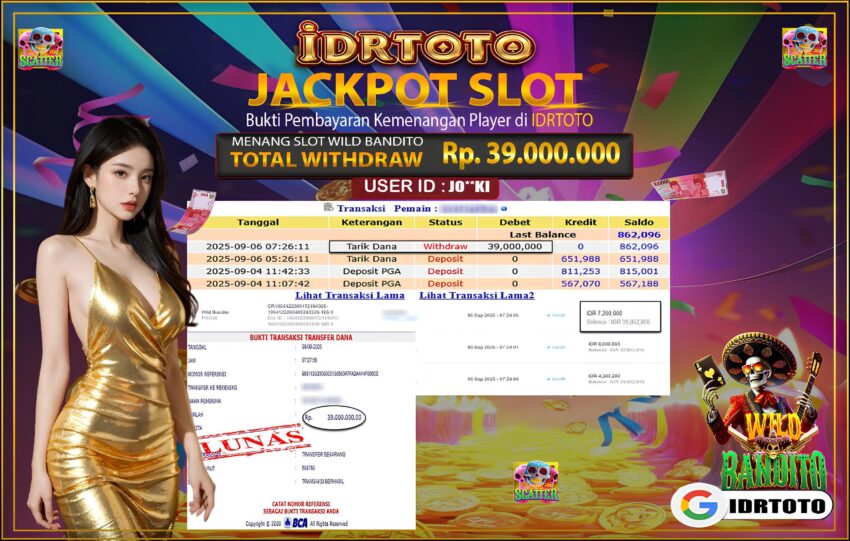 IDRTOTO BAYAR LUNAS JACKPOT PERMAINAN SLOT WILD BANDITO Rp.39.000.,000 – LUNAS