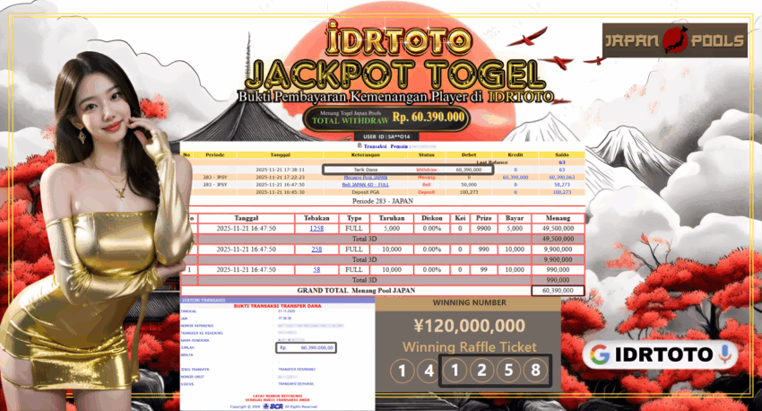 IDRTOTO BAYAR LUNAS JACKPOT PERMAINAN TOGEL JAPAN POOLS Rp.60.390.000 – LUNAS
