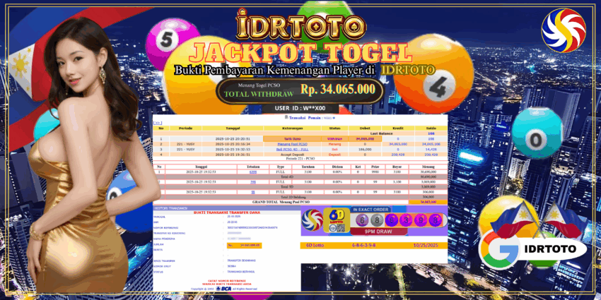 IDRTOTO BAYAR LUNAS JACKPOT PERMAINAN TOGEL PCSO Rp.34.065.000 – LUNAS