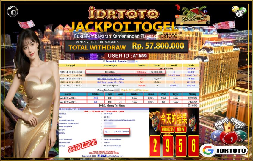 IDRTOTO JACKPOT PERMAINAN TOGEL TOTO MACAU P5 Rp.57.800.000 – LUNAS