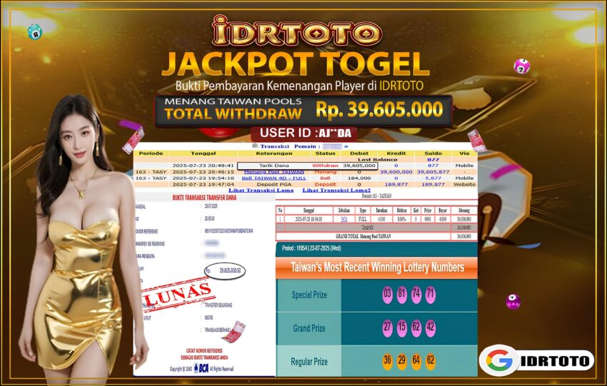 IDRTOTO BAYAR LUNAS JACKPOT TOGEL TAIWAN POOLS Rp.39.605.,000 – LUNAS